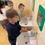 V polovici mesiaca nás opäť navštívila pani z Regionálneho úradu verejného zdravotníctva. Tentoraz nerozprávala o ovocí a zeleninke, ale o správnej hygiene rúk. Deti si utvrdili vedomosti prečo si musia umývať rúčky a aký je pri tom správny postup.