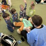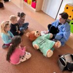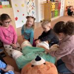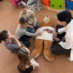 Ďalšou vzácnou a milou návštevou bola návšteva medikov z Nemocnice u medvedíka Teddyho. Škôlkari sa zahrali na lekárov a liečili plyšových medveďov za pomoci mladých študentov medicíny. Bola to veľká zábava.