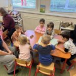 Predškoláci, trieda žirafiek, predviedli svoje umelecké vlohy na besiedke pre starých rodičov. Trieda praskala vo švíkoch. Starkí si poslednú im venovanú besiedku naplno užili. Veľkým prekvapením pre našich škôlkarov bola návšteva gymnazistov z EGMT. Pod vedením pani farárky Natálky Kacianovej a Janky Bosákovej zorganizovali pre deti šarkaniádu. A hoci nám vietor moc nefúkal, zažili sme doobedie plné zábavy, smiechu a veselých stretnutí.