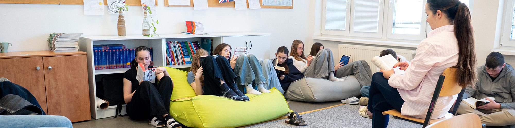 V niektorých ročníkoch druhého stupňa základnej školy a gymnázia sme v tomto školskom roku spustili projekt WE READ s podtitulom Čítame pre radosť v angličtine. Naším cieľom je podporiť kultúru čítania a zároveň rozvíjať čitateľské zručnosti žiakov.